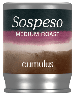 An opened pack of Sospeso medium roast coffee capsule next to a cup of coffee